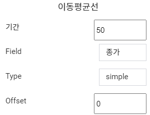 위 사진에서는 기간동안의 Field(종가) 값을 평균 내어 차트 위에 그린다고 보시면 됩니다.