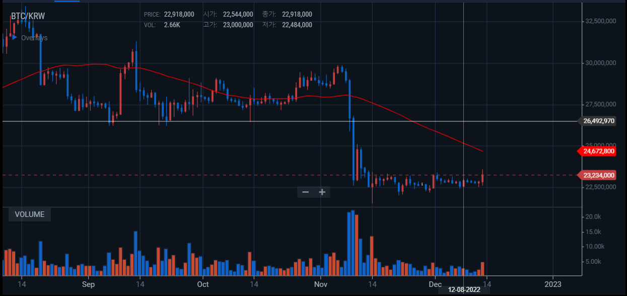 12월 14일 새벽의 업비트 비트코인 일봉 차트입니다.